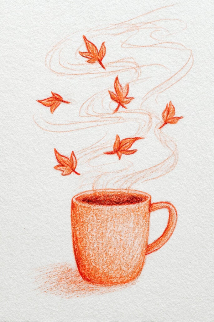 I stumbled into autumn doodles kind of by accident. It was October, I was bored during a phone call, and I started drawing a little pumpkin in the margin of my notebook. Then I added a face to it. Then I drew a tiny scarf on it because why not? By the time my call ended, I had a whole row of pumpkins doing various autumn activities, and honestly, they made me happier than any of the “proper” drawings I’d been struggling with that week.