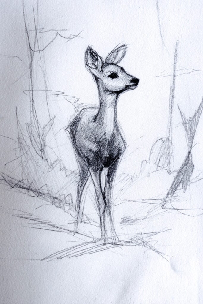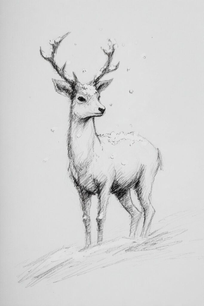 Before we jump into the sketch ideas, here’s a quick reminder: winter animals are the perfect practice subjects because they naturally invite flowing strokes (fur, feathers, snow) and soft shading. This makes them ideal for learning texture, value, and atmosphere—three core skills that will help you grow as an artist.