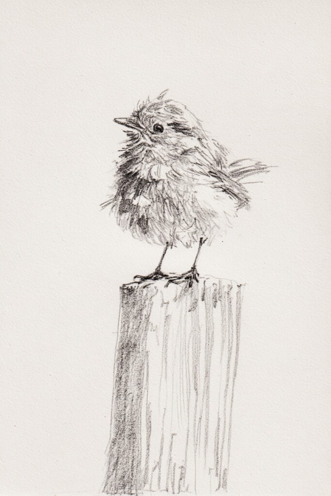 Fur and feathers don’t need thousands of strokes. Light directional lines go a long way.