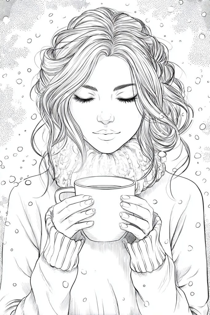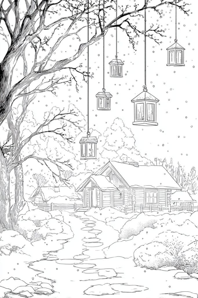 Below are 25 soft winter aesthetic coloring page ideas designed to soothe your mind and spark your imagination. Each one captures the calm, dreamy atmosphere of winter at its most comforting.