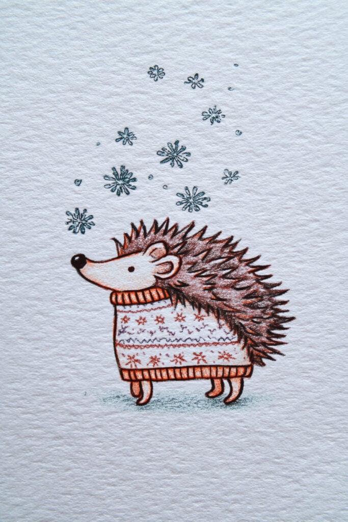 The thing about cute winter animal doodles is that nobody’s judging you. There’s no pressure to get the anatomy perfect or nail the perspective or create meaningful social commentary. It’s just “what if this hedgehog wore a pom-pom hat?” And the answer is always yes, the hedgehog should absolutely wear a pom-pom hat.