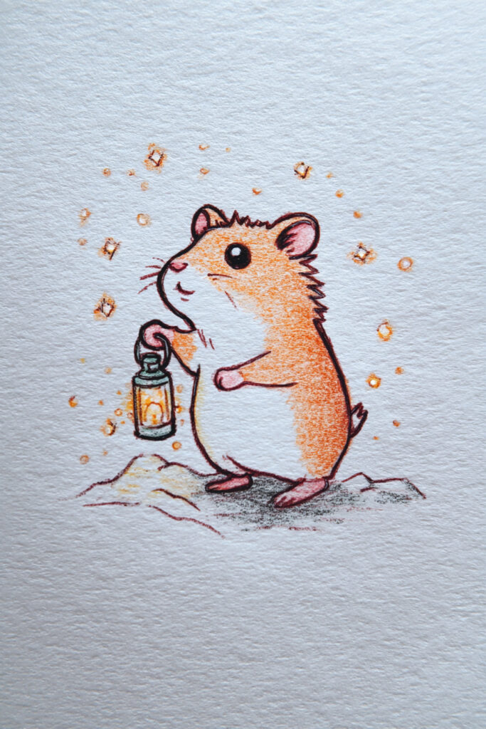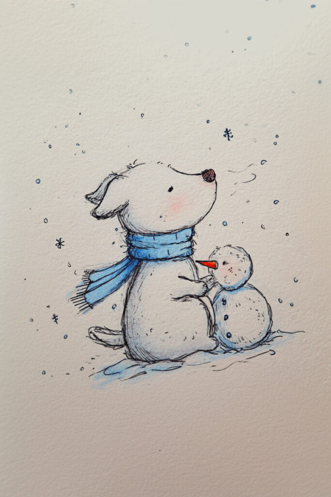 Winter animal drawings don’t need complex anatomy. Sitting, sleeping, peeking out from the snow, or holding small objects are easy poses that look adorable and approachable. These simple compositions are perfect for beginners while still offering charm for more experienced artists.
