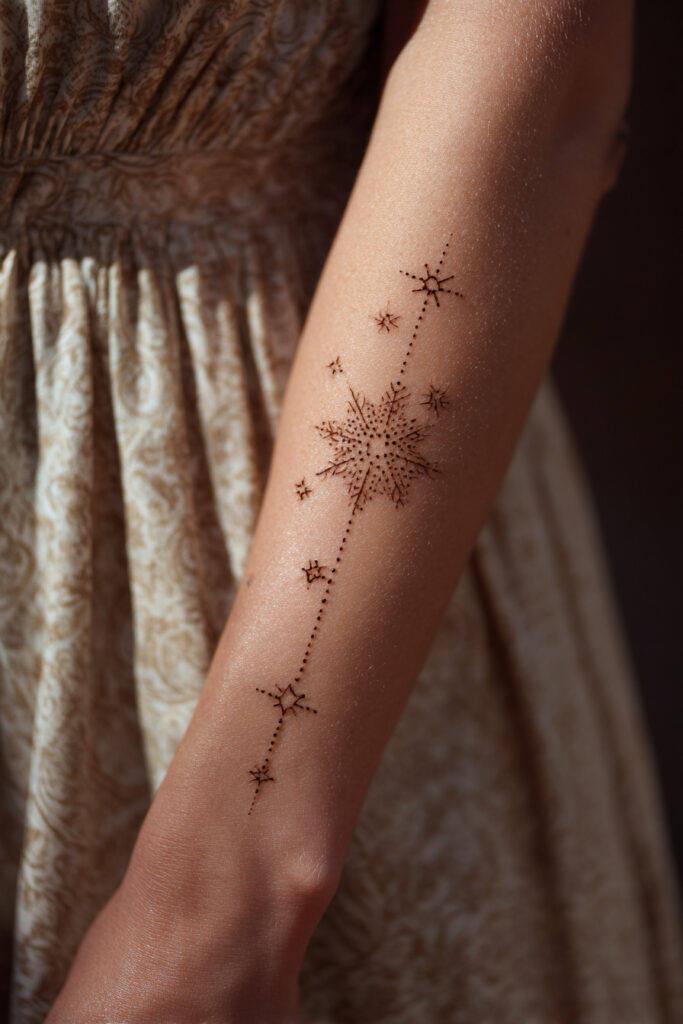 To get started, try drawing a simple floral vine along the wrist, a small mandala on the palm, or a minimal leaf pattern around the ankle. You could also explore finger trails, dotted borders, or a crescent moon design. These ideas are beginner-friendly and perfect for practicing control and flow.