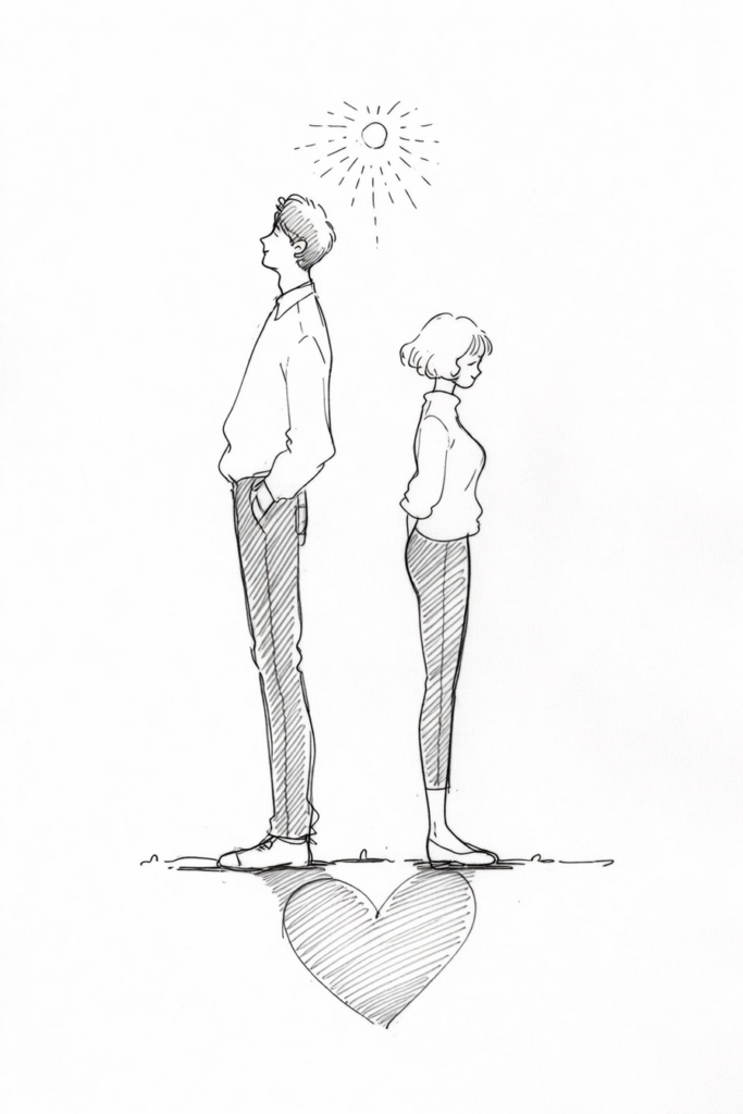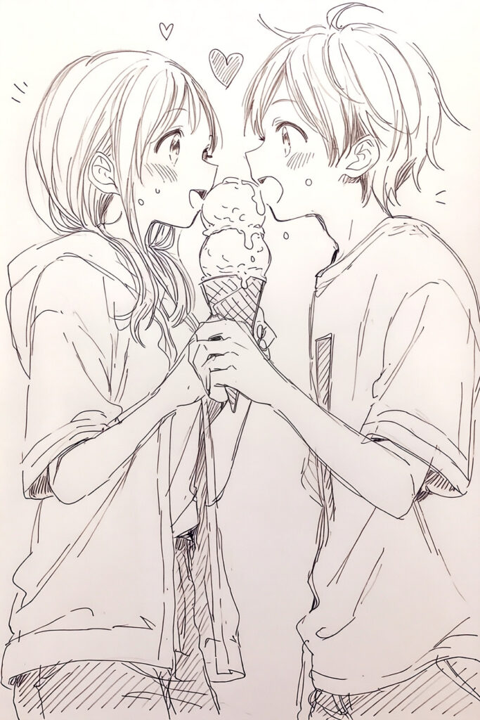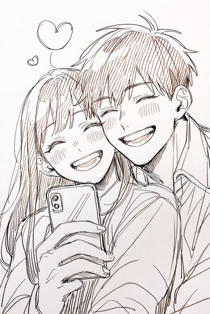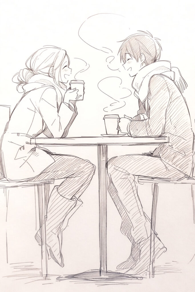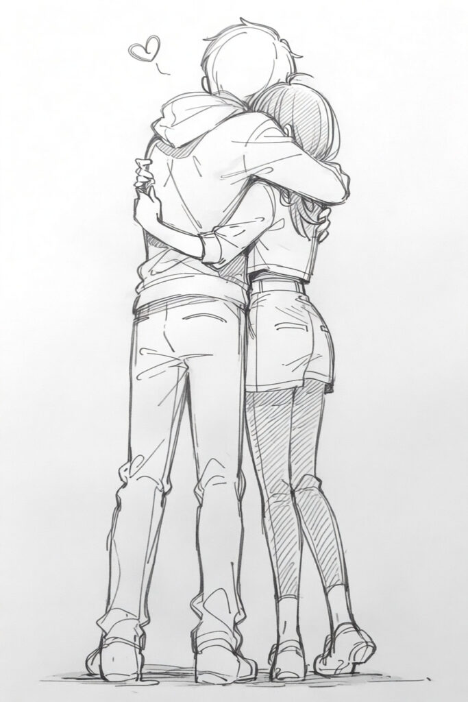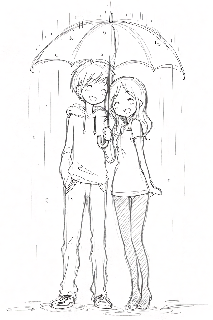 The Valentine sketches in this post focus on gentle emotions rather than bold gestures. They’re inspired by calm, hand-drawn moments: shy smiles, close glances, and the feeling of being comfortable with someone you care about. You don’t need advanced drawing skills to create that mood. You just need to slow down.