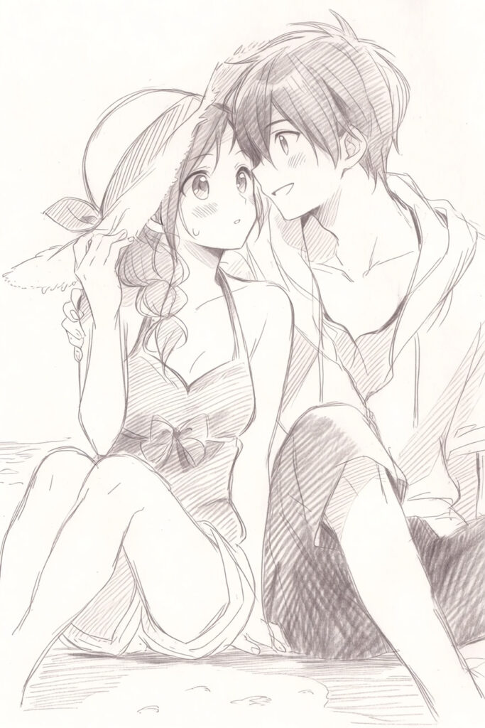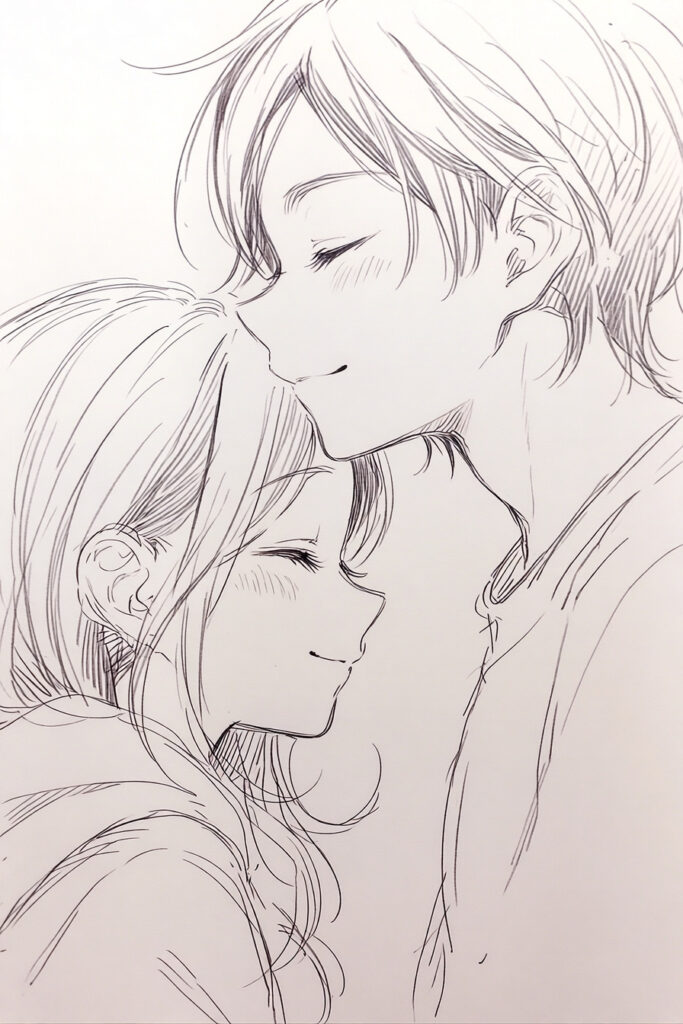 Simple sketches of couples leaning in, sharing a small smile, or resting close together. These scenes feel intimate without being dramatic.