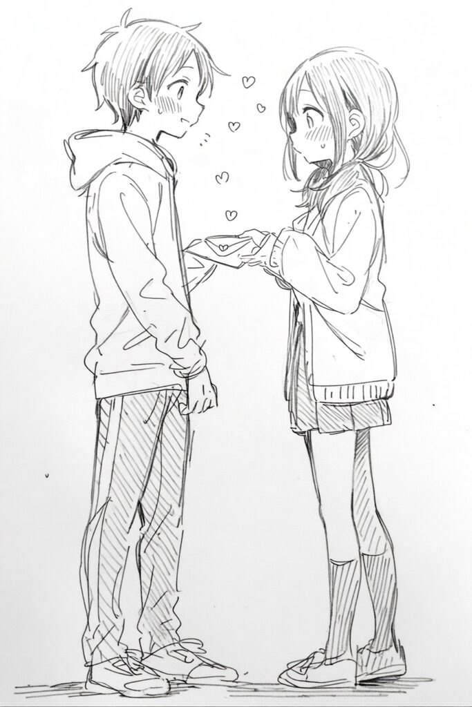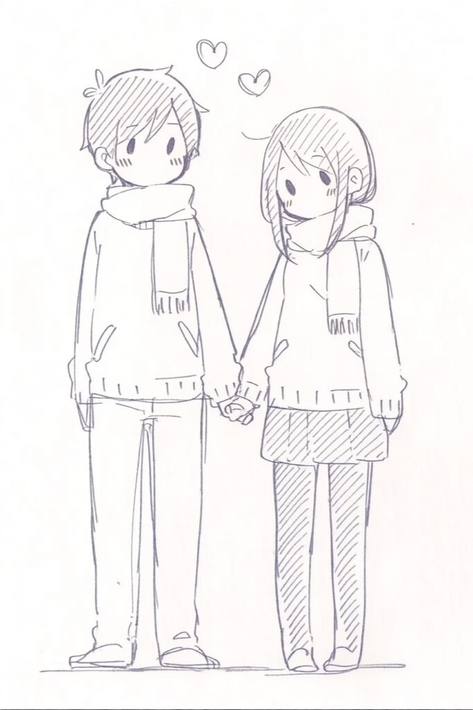 Not all Valentine art needs hearts everywhere or dramatic poses. In fact, many artists gravitate toward minimal, sketch-style drawings because they feel more personal.