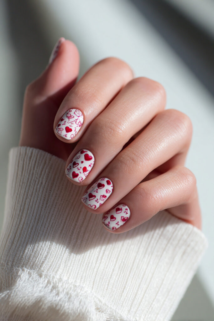 This collection of cute Valentine nail ideas focuses on romantic simplicity. Think delicate hearts, subtle pinks, and designs that feel wearable in real life, not just for a single day. Whether you’re doing your nails at home or saving ideas for a salon visit, these styles are meant to inspire without overwhelming.