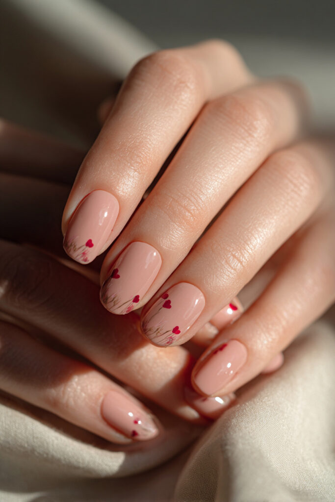 Below, you’ll find a curated collection of cute Valentine nail designs inspired by romantic color palettes and gentle details. These styles range from ultra-minimal to softly decorative, making them easy to adapt to your personal taste.