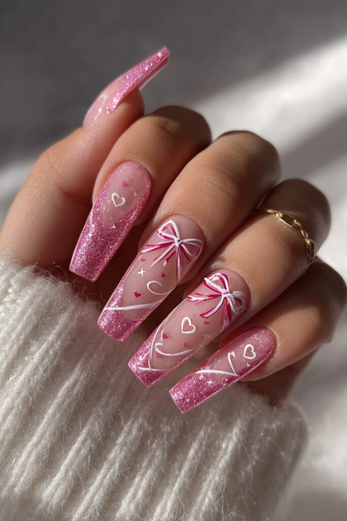 Bow & Heart Ballet Nails
