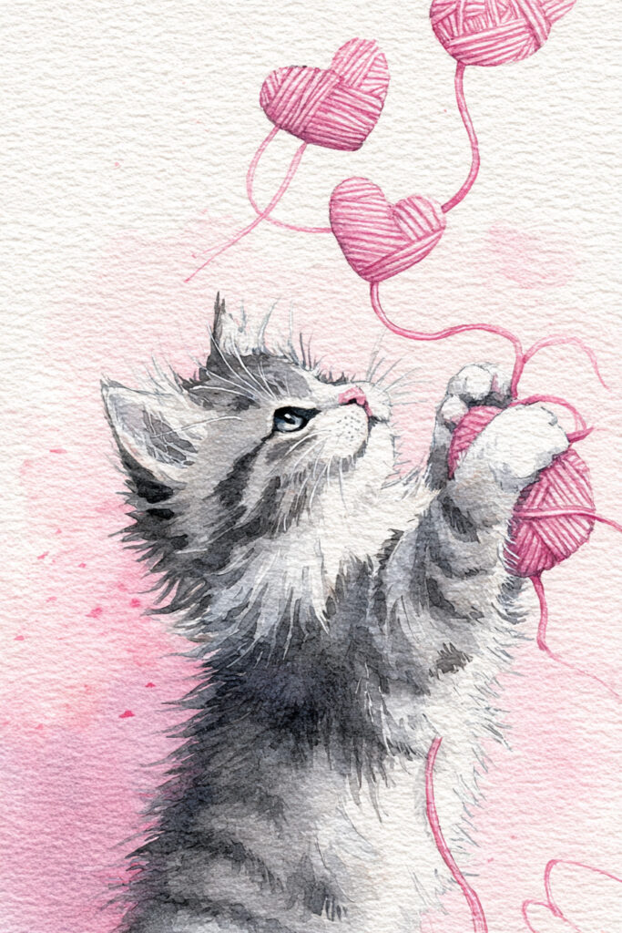 Kitten Yarn Hearts