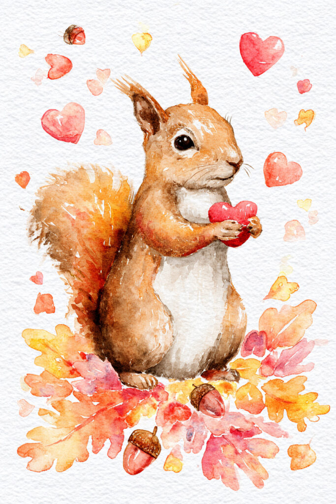 Squirrel Acorn Hearts