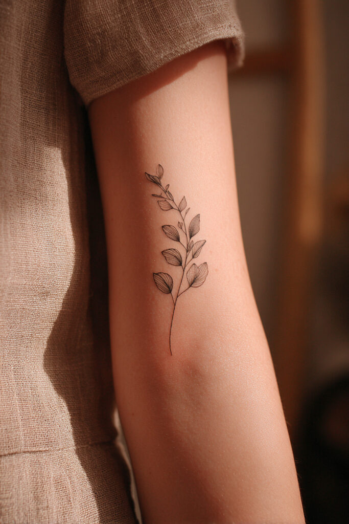 Designs like Botanical Fern Frond, Eucalyptus Sprig, and Botanical Olive Branch carry an organic flow that works beautifully along the forearm, collarbone, or spine. They follow the body’s movement, almost like vines guided by breath.