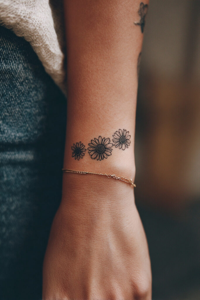 Minimal floral tattoo designs prove that simplicity can hold deep meaning. Across these 25 nature-inspired ideas, we see how a single stem, a fine outline, or a tiny cluster of blooms can express memory, growth, love, or resilience without overwhelming detail. By focusing on clean linework, negative space, and organic flow, these tattoos feel timeless and personal. Whether you’re drawn to romantic cherry blossoms, symbolic olive branches, or playful daisy chains, minimal floral tattoos offer a refined way to carry a piece of nature with you wherever you go.