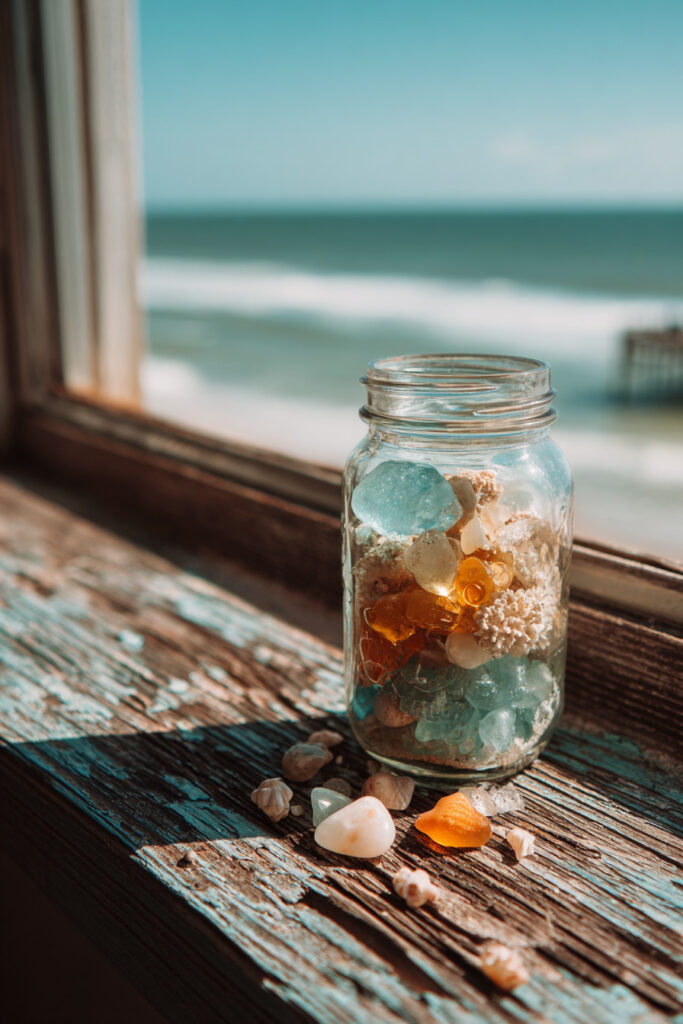 Scenes like Nautical Rope and Anchor Details, Collected Treasures in a Glass Jar, and Driftwood and Dried Florals transform simple objects into quiet coastal narratives—perfect for close-ups and still-life photography.