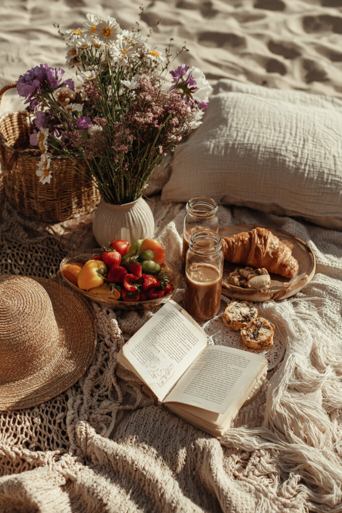 Beach photography shines when it leans into lifestyle storytelling. A Vintage Picnic on a Beach Blanket feels like a lazy afternoon where time didn’t matter. Beach Reading Nook and Sandy Blanket and Book capture those peaceful hours spent half-lost in pages, half-listening to waves.