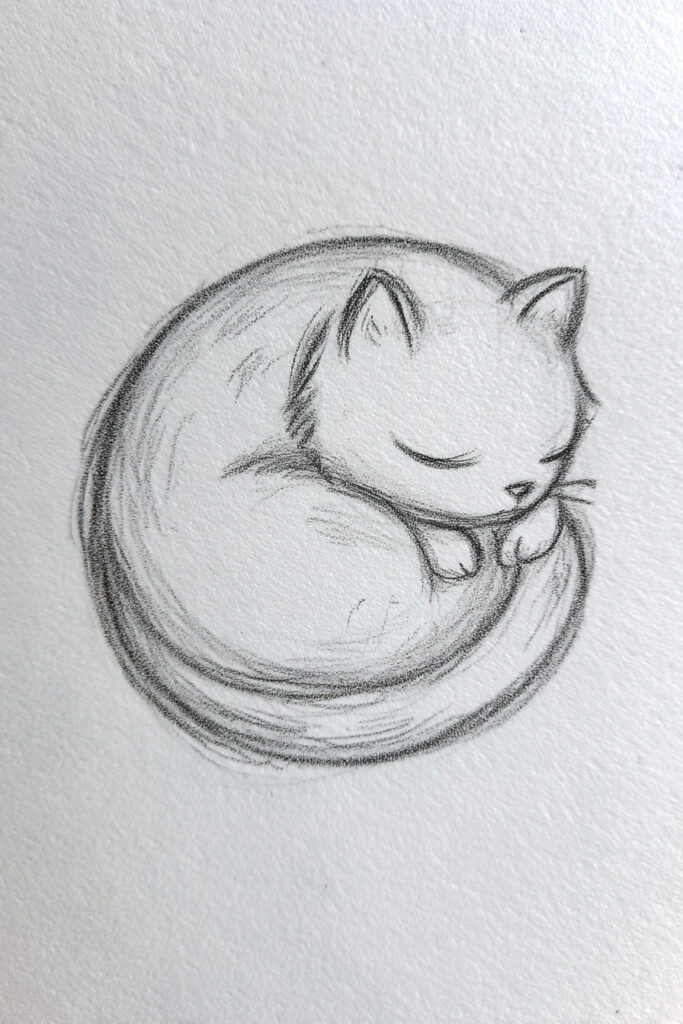 A beginner artist once shared that she felt stuck trying to draw realistic portraits. Everything felt too serious. One evening, she sketched a small Cat Curled into Ball just for fun. It wasn’t perfect. The ears were uneven. The tail was slightly too long.