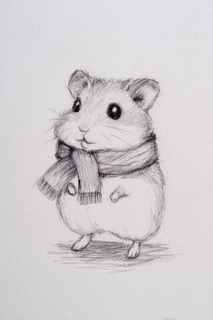 The smallest details can transform a basic sketch into something memorable. A Bunny in Oversized Sweater instantly feels cozy. A Fox with Simple Scarf adds charm. A Hamster Wearing Scarf becomes a winter character in seconds.