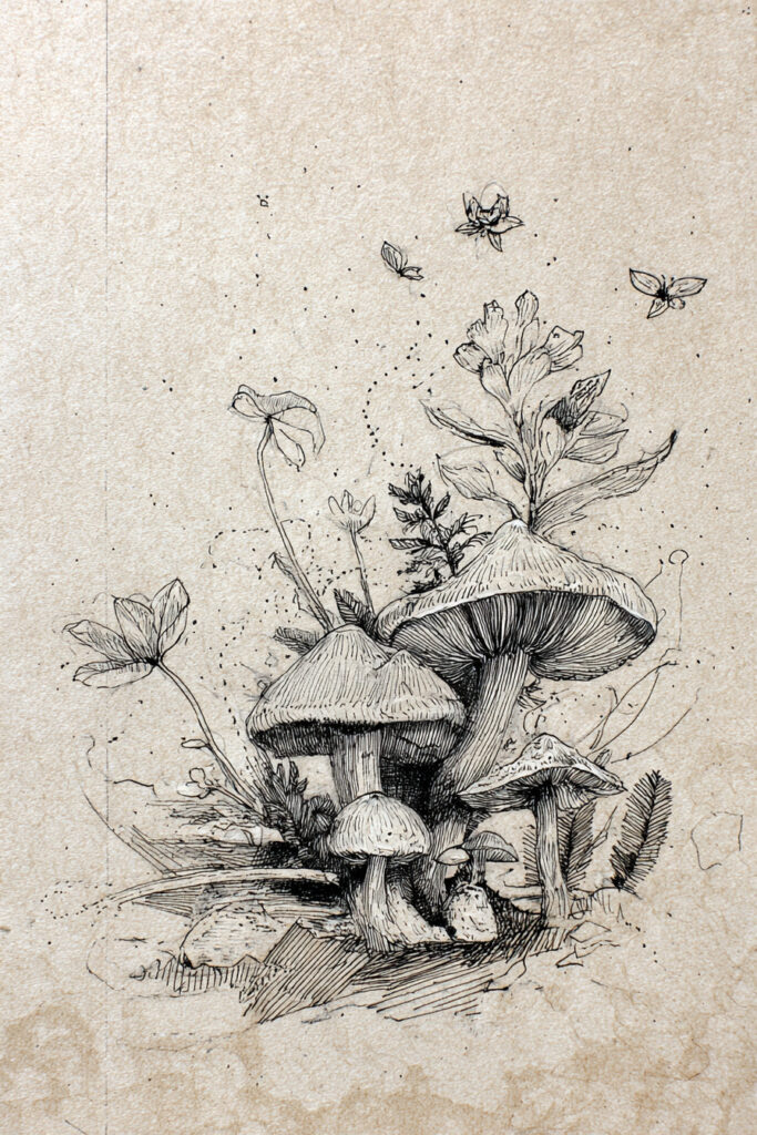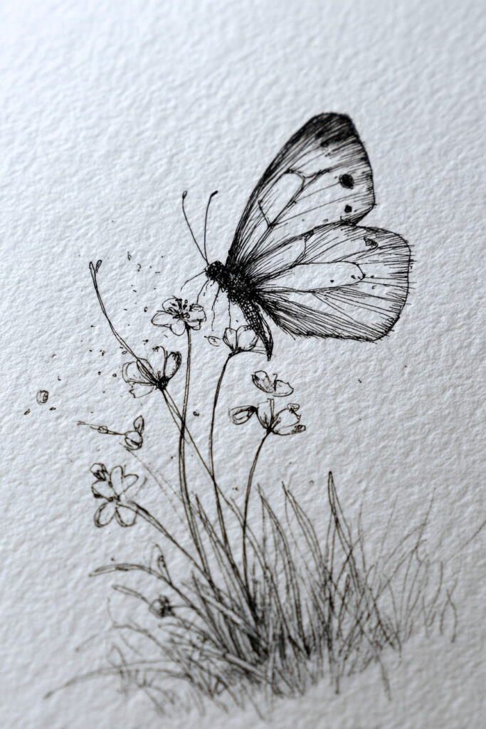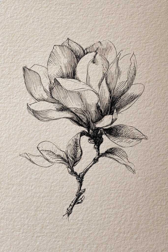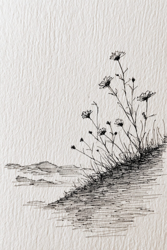Below, you’ll find the complete set of elegant pen and ink spring drawing ideas inspired by nature. Each illustration focuses on refined linework, delicate shading, and intentional composition. As you browse the images, notice how texture is built gradually through crosshatching, stippling, and layered contours.