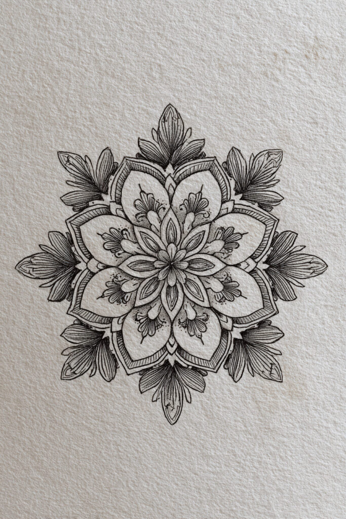 Even structured designs such as a Botanical Wreath or Floral Line Mandala create balance through repetition and symmetry while maintaining delicate intricacy.