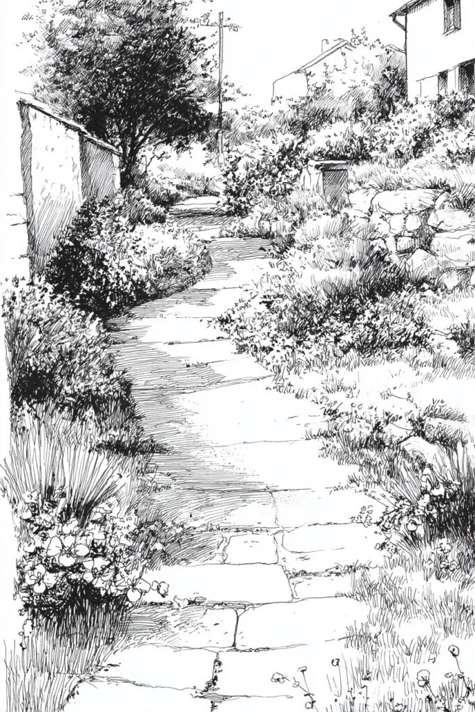 Spring also blooms through places. A Cottage Garden Gate or Blooming Archway combines structure with softness. A Winding Garden Path invites perspective drawing framed by florals.