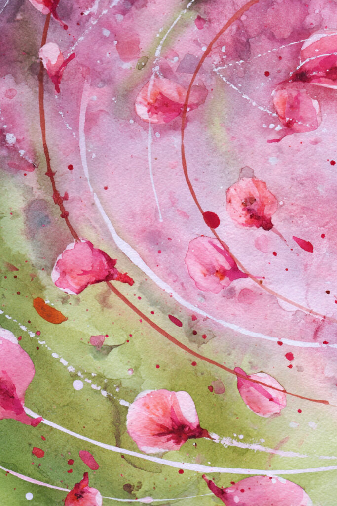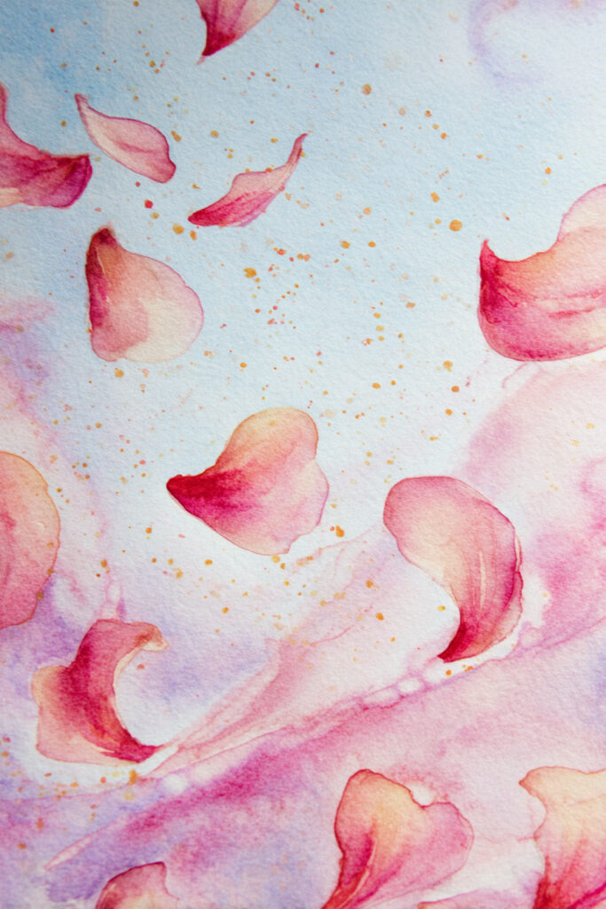 - Splatter technique for falling petals—dip your brush and flick gently