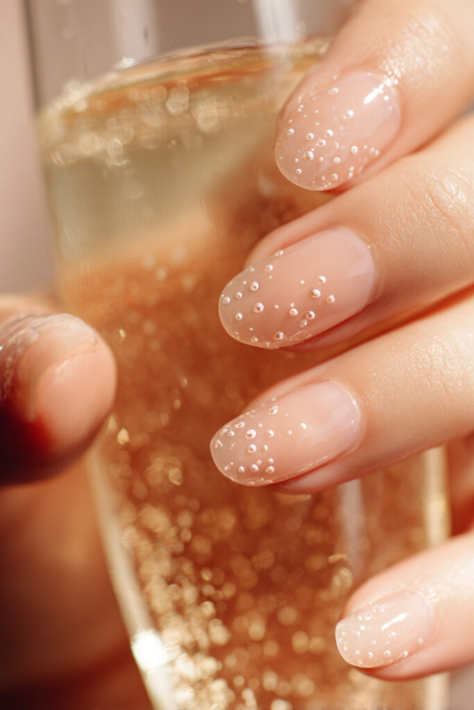 22. Champagne Jelly Nails with Rising Bubble Detail