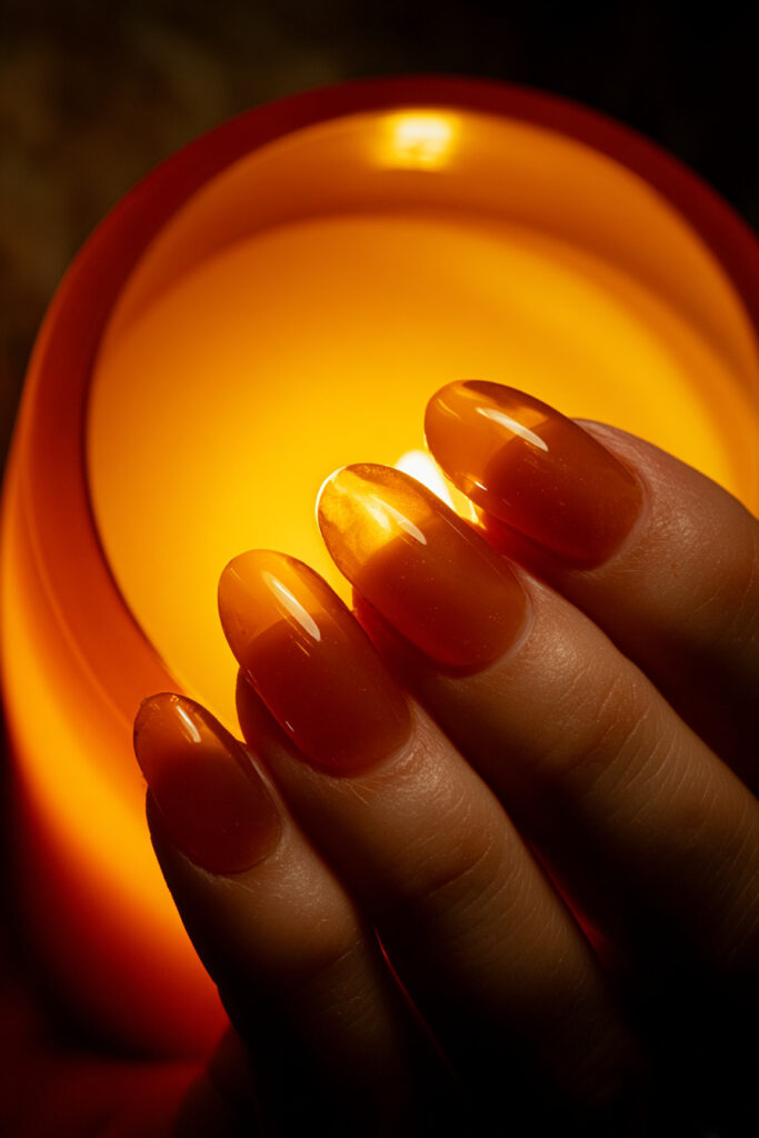 19. Honey Amber Jelly Nails with Warm Glow