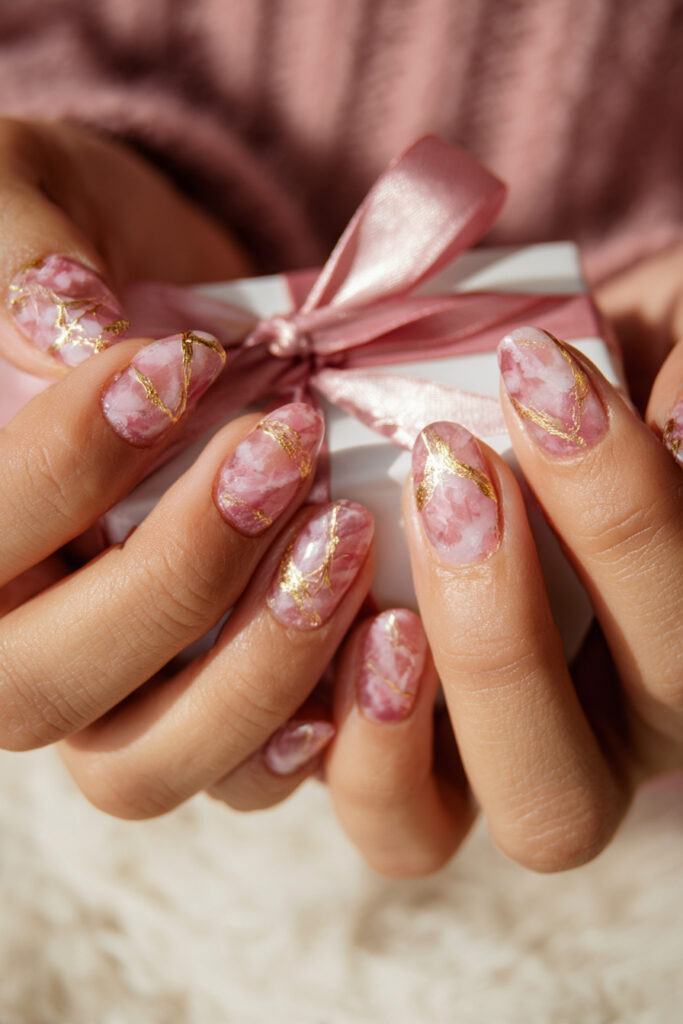 5. Rose Jelly Nails with Foil Marble Veins