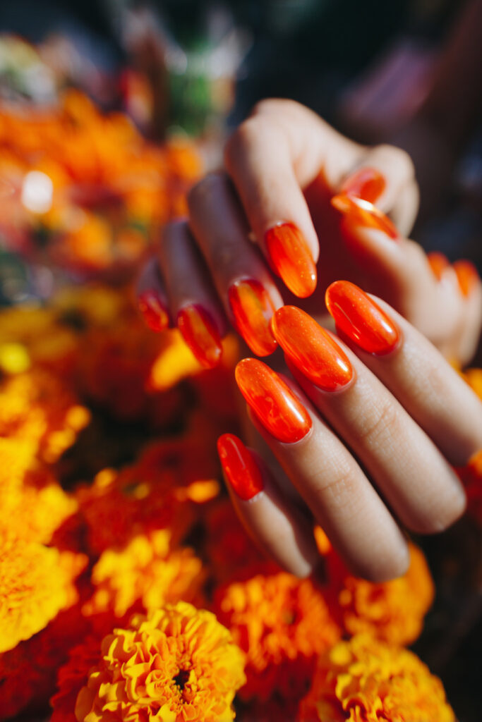 21. Tangerine Jelly Nails with Neon Inner Glow