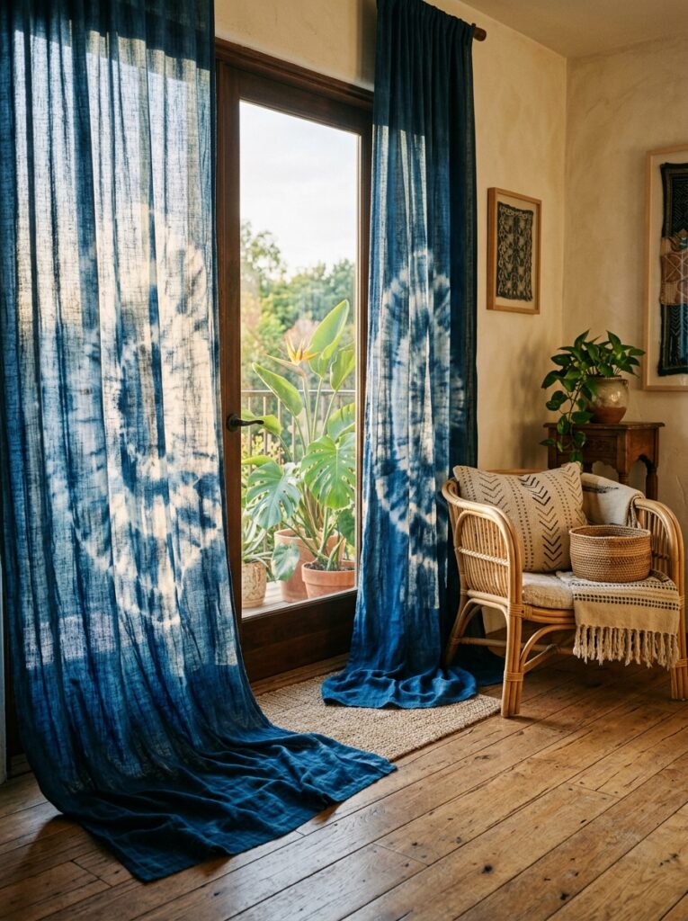 ❖ Styling Tip: For authentic West African indigo appeal, seek out adire fabric curtains from Nigerian textile artisans. The resist-dyeing process creates unique patterns in the fabric that no two panels share.