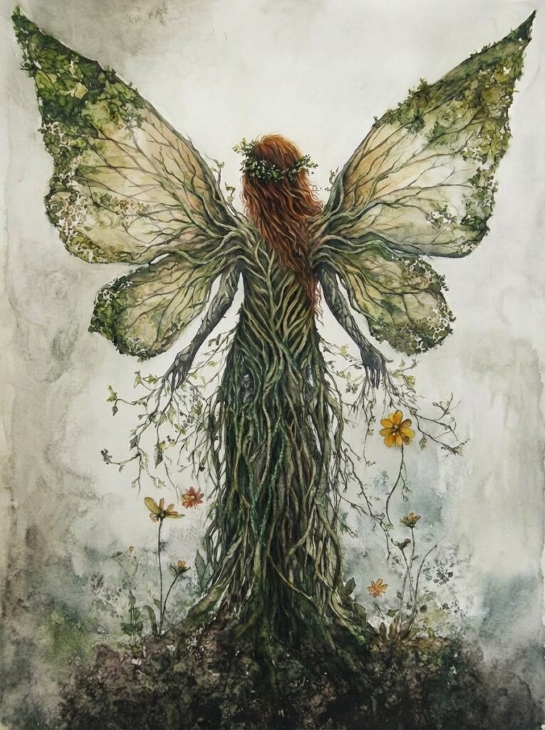 Deep forest green and warm brown make this painting feel ancient. If you love nature-forward enchanted forest fairy watercolor art, this one belongs at the top of your must-paint list.