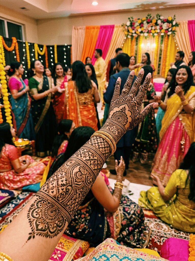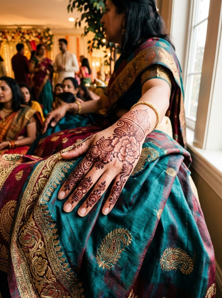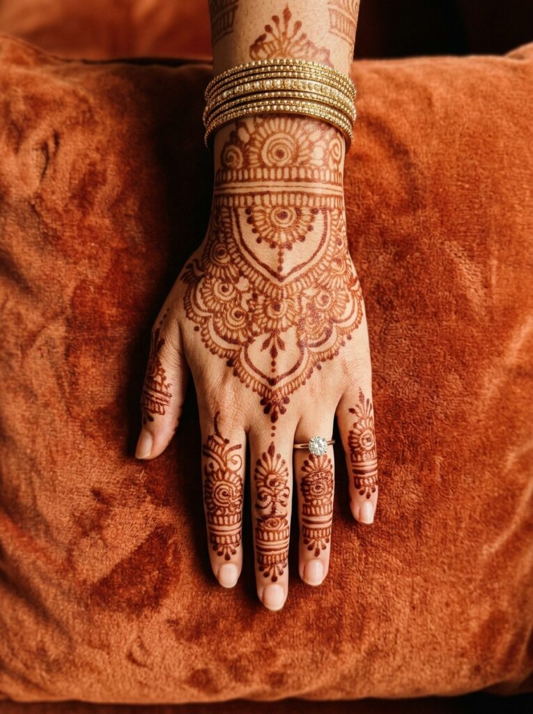 Communication with your artist before the appointment is essential: share your dress neckline, sleeve length, and any jewelry you plan to wear so the henna design can be planned around your accessories rather than competing with them.